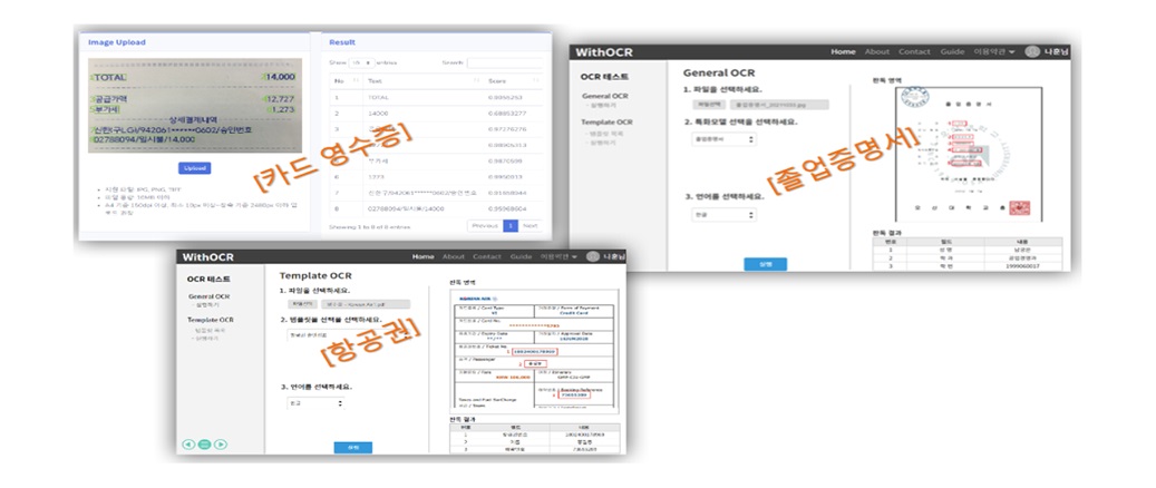 WithOCR은 범농협 비즈니스 활용 및 내부 업무 효율화 목적의 OCR 사용 니즈 증대에 따라 자체 기술 확보를 위해 개발한 딥러닝(Deep Learning)기반 OCR 솔루션으로, 이미지 내에서 글자 위치를 탐지하는 글자 검출 모델과 탐지된 글자 위치에서 글자 내용을 인식하는 글자 인식 모델로 구성되어 있습니다.